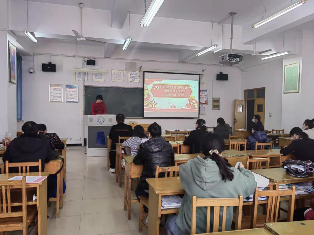 beat365中文官方网站教工党支部于2021年12月9日,召开讨论接收张碧杰同志成为预备党员支部大会。大会由高静老师主持,黄立明院长亲临指导,应参会党员31人,请假12人,党员实到19人。