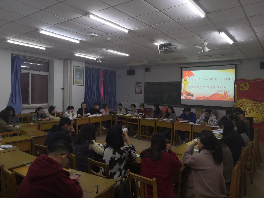 [主题教育]信息管理党支部召开“不忘初心、牢记使命”主题教育对照党章党规找差距专题会议