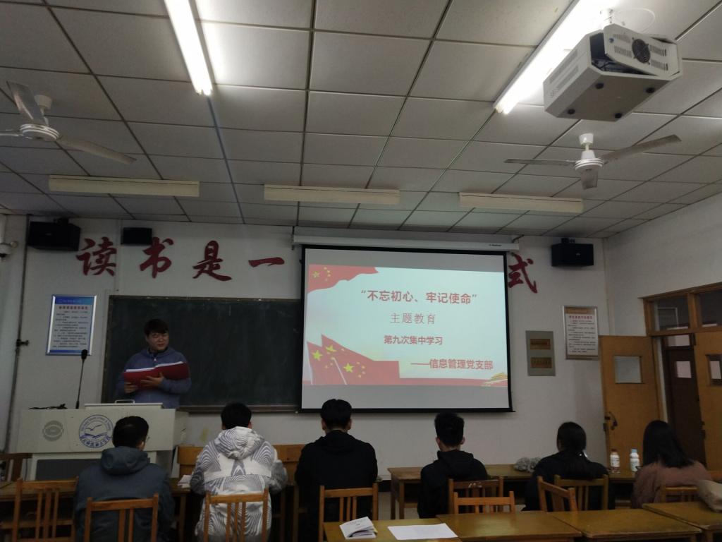 beat365中文官方网站信息管理党支部于2019年11月21日在逸夫楼A510进行了“不忘初心,牢记使命”主题教育第九次集体学习。