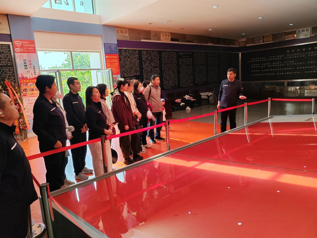 沙石峪“当代愚公”精神,诞生于上世纪五六十年代。沙石峪人民面对“土如珍珠水如油,满山遍野大石头”的恶劣农业生产条件,在党支部书记张贵顺的带领下,发扬愚公移山精神,战天斗地,改造自然,创造了“万里千担一亩田,青石板上创高产”的人间奇迹。周恩来总理曾两次来沙石峪视察,称赞沙石峪人是“当代的活愚公”和“中国北方农业的一面旗帜”。在沙石峪纪念馆,全体党员通过参观珍贵的历史照片、实物展品和生动的文字介绍,全面地了解了沙石峪人民战天斗地的创业历程和取得的辉煌成就。参观过程中,大家认真聆听学院党委书记讲解,不时驻足沉思,被沙石峪人民的拼搏精神深深打动。