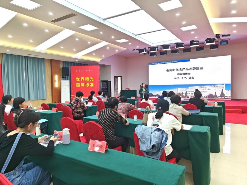 2023年10月9日,受河北省妇联委托,beat365官网赵春霞博士在雄安为60位河北省巾帼现代农业科技示范基地负责人进行了“电商时代农产品品牌建设” 的专题讲座。讲座内容从“共同富裕”和“乡村振兴”的时代背景出发,分别介绍了全国以及河北省农产品电商的发展现状以及农产品品牌的发展现状与问题,最后从8个方面提出了河北省发展农产品品牌的思路与对策。