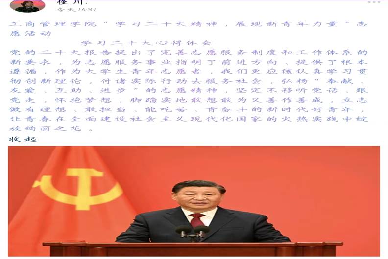 beat365中文官方网站青年志愿者协会向学院青年志愿者发起倡议,号召志愿者积极学习贯彻党的二十大精神,学院青年志愿者以集中和分散两种形式开展学习,并将学习心得在新媒体平台分享,志愿者表示,“党的二十大报告提出了完善志愿服务制度和工作体系的新要求,为志愿服务事业指明了前进方向、提供了根本遵循,作为大学生青年志愿者,我们更应该认真学习贯彻创新理论,付诸实际行动去服务社会,弘扬“奉献、友爱、互助、进步”的志愿精神,坚定不移听党话、跟党走。”