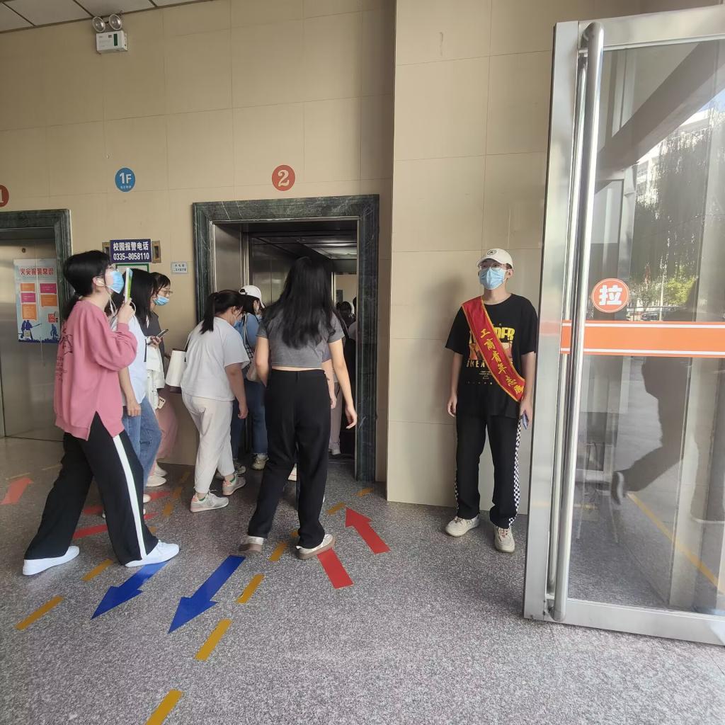 beat365中文官方网站青年志愿者协会招募志愿者,开展文明乘电梯引导工作,在早午的高峰时间段进行电梯疏导,为确保他们之间的安全距离,避免人员堆积造成不文明现象,并提醒同学们科学佩戴口罩,增强同学们自我防护的意识。