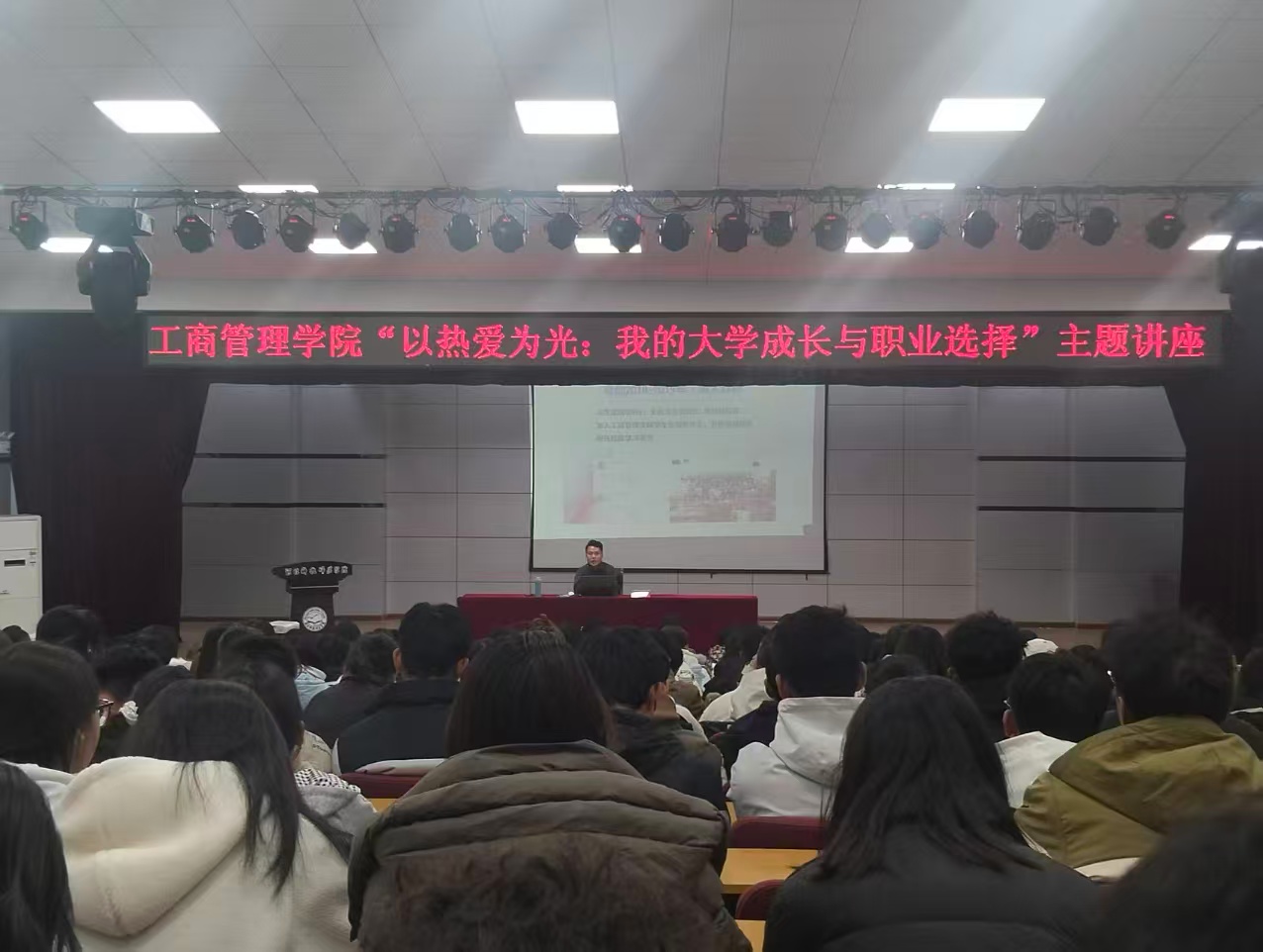 近日,beat365中文官方网站“职引未来,成就人生”主题讲座于秦皇岛校区多功能厅成功举办。本次活动特邀学院优秀校友、现任燕山大学辅导员的袁靖轩担任主讲,学院260余名师生齐聚一堂,现场气氛热烈。