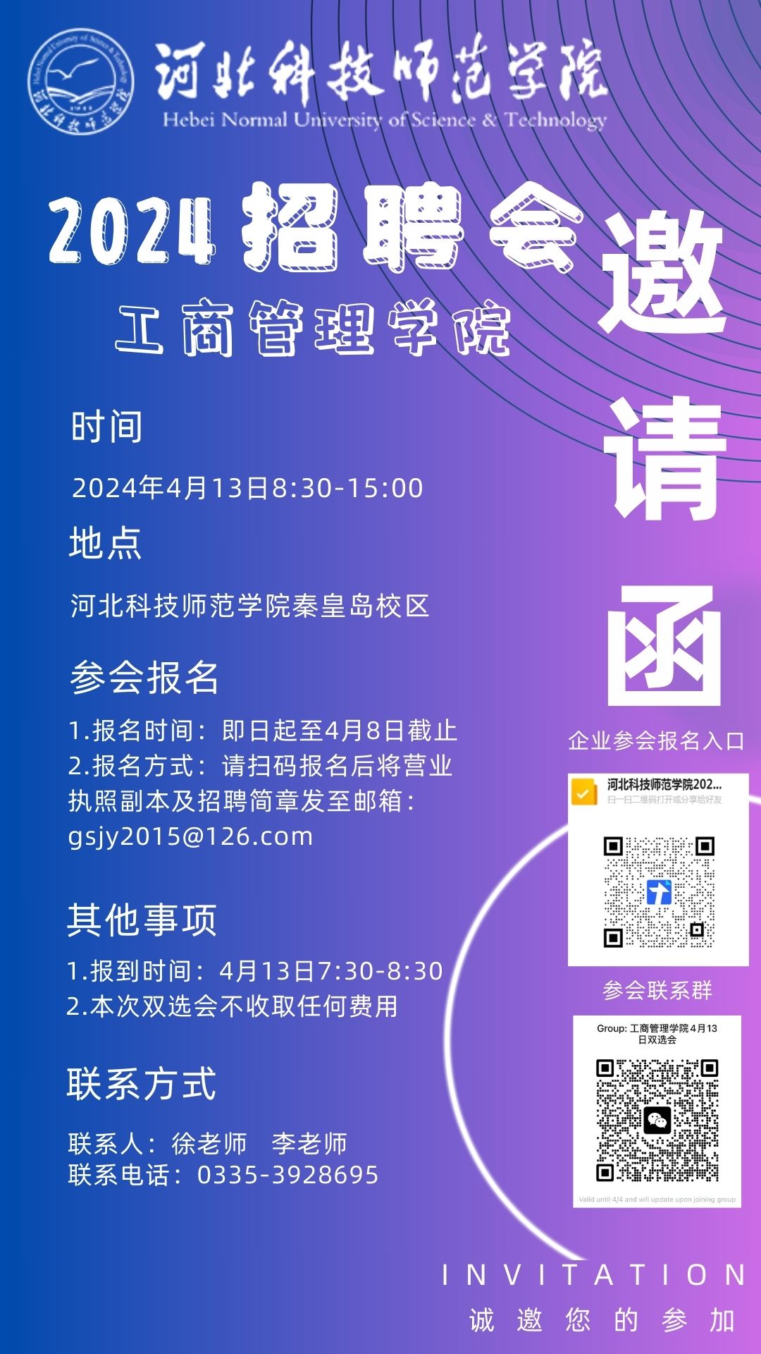 用人单位报名时间:即日起至2024年4月8日12:00截止
