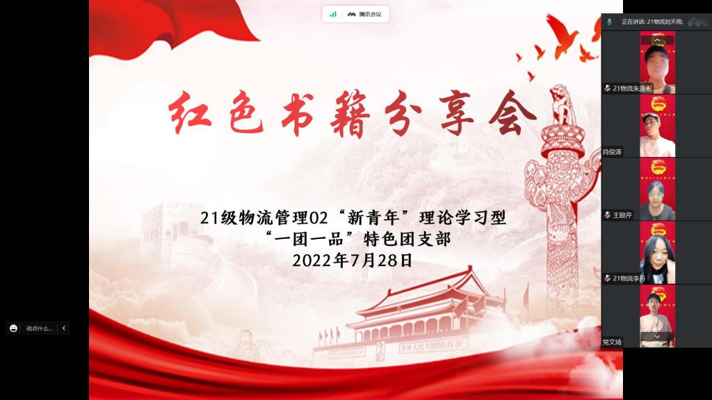 为深化对习近平新时代中国特色社会主义思想的理解,引导同学们树立正确的人生观、价值观和世界观,2022年暑期,beat365中文官方网站21级物流管理02“新青年”理论学习型“一团一品”特色团支部开展阅读红色书籍活动,并于7月28日召开红色书籍分享交流会。