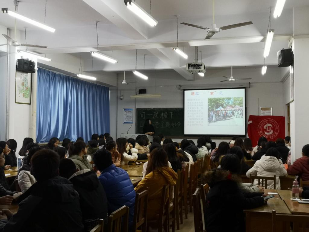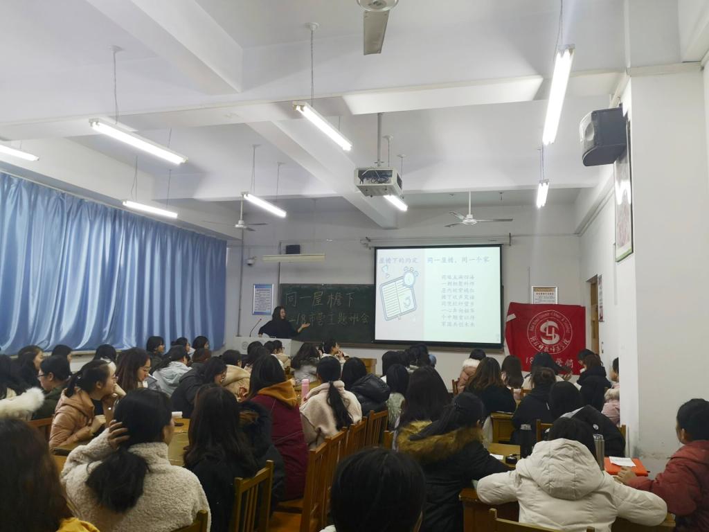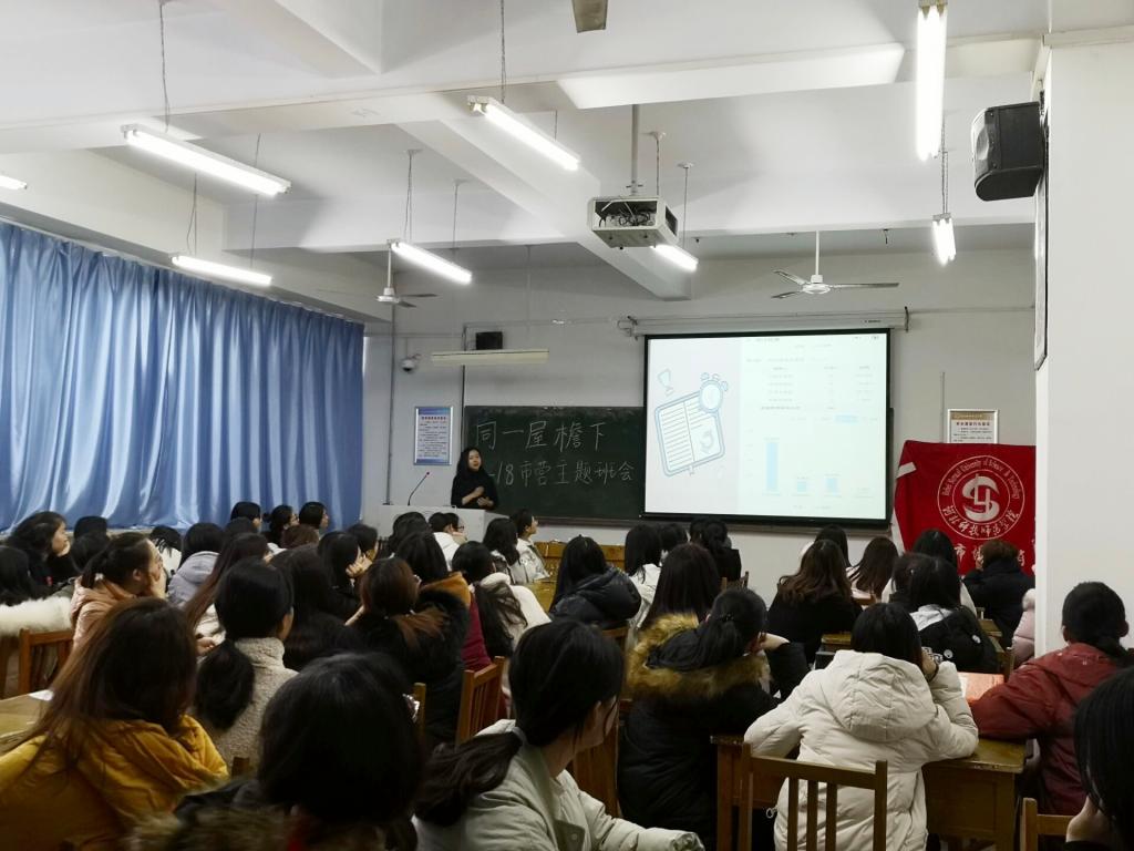 为增强班级凝聚力,深化班风建设,增强宿舍之间的交流沟通,2019年12月24日下午,2018级市场营销专业在逸夫楼A410召开以“同一屋檐下”为主题的班会。