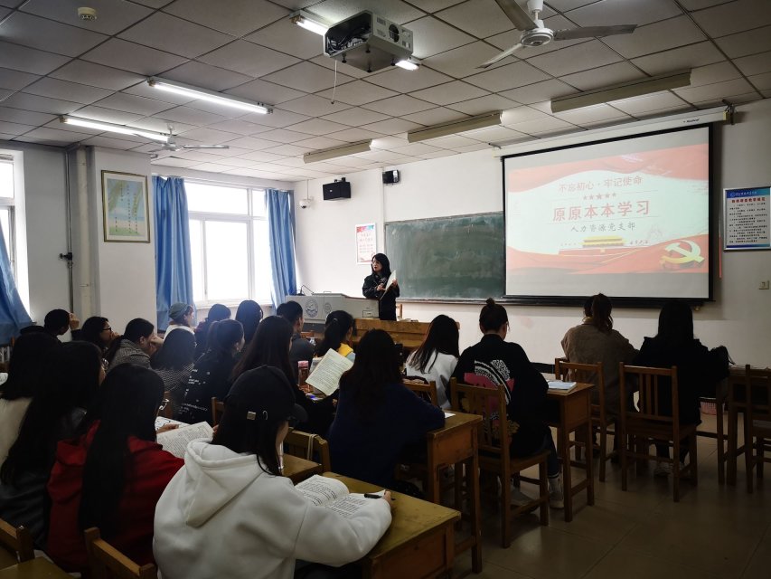 2019年10月18日下午,beat365中文官方网站人力资源党支部组织全体党员、积极分子于逸夫楼A507举办“不忘初心、牢记使命”主题教育学习活动。集中时间、集中精神、集中精力进行理论学习,切实提高运用党的创新理论武装头脑、指导实践、推动工作的能力,推动支部主题教育高质量开展。