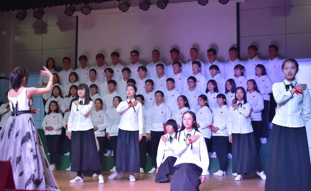 比赛中,同学们着装整齐、饱含激情、用自己高亢嘹亮的歌声歌唱祖国、颂扬祖国。《我和我的祖国》、《国家》、《歌唱祖国》、《再一次出发》、《我们都是追梦人》等一首首耳熟能详的红色歌曲回荡在舞台上空,充分表达了同学们对祖国母亲的热爱,同学们声情并茂的合唱不时赢得现场观众的阵阵掌声。