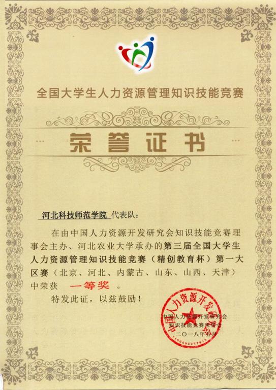 5月6日,beat365中文官方网站人力资源管理专业学生获得第三届全国大学生人力资源管理知识技能竞赛(精创教育杯)第一大区赛一等奖。经过激烈的对抗比赛,beat365官网代表队稳居小组赛第三名,最终获得大赛“一等奖”的好成绩,并顺利进入全国总决赛。代表beat365官网参赛的“凌云战队”由beat365中文官方网站张宏卫老师带队,孙西亚、张正辉、史天俏、尹高帅四位队员组成。