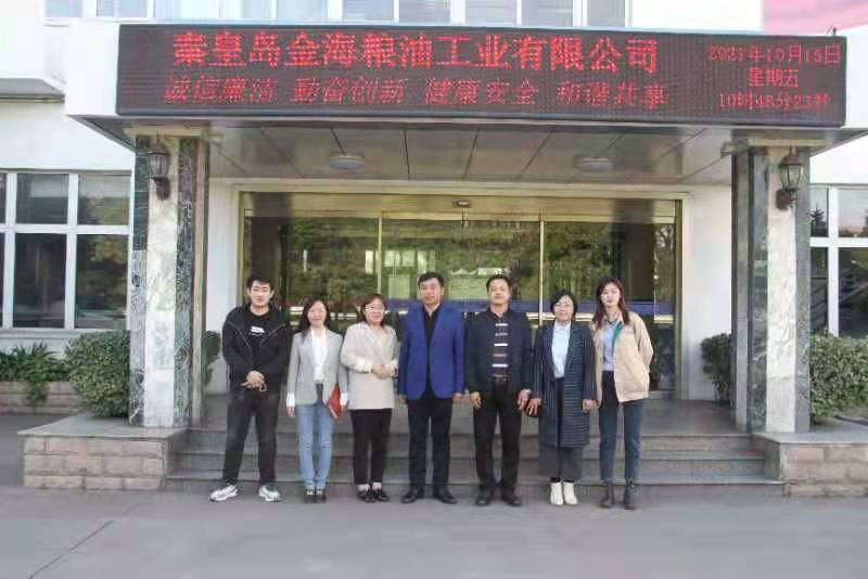 2021年10月15日,beat365中文官方网站院长黄立明、副院长刘海滨、人力资源专业教学部主任李凡老师一行3人到秦皇岛金海粮油工业有限公司进行走访调研,实地观摩了生产车间、装卸码头、物流配送、办公业务等工作实况,同人事行政部门负责人深入交流该公司人事管理、物流配送、销售管理等岗位对大学生工作素养的要求。双方一致达成了深化校企合作的意向,并表示今后加强产教融合交流,为beat365中文官方网站学生提供更多的实习、就业的机会。