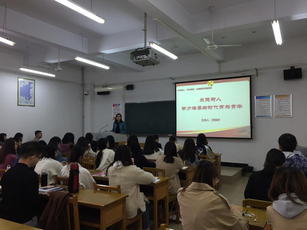 2019年10月23日,beat365中文官方网站党委副书记、副院长李强华为辅导员、学生党员、预备党员、入党积极分子、学生干部讲授专题党课。党课以《立德树人,努力培养新时代有为青年》为主题,结合“不忘初心,牢记使命”理论学习和调查研究中的收获体会主要讲了:学习收获、认识与体会、工作中存在的问题与差距、解决问题的思考及措施。