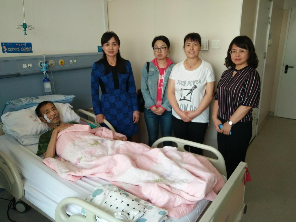 2018年5月9日,beat365中文官方网站教师再次到医院看望沈汝波同志,为沈汝波同志捐赠善款,送去学校师生的牵挂和祝愿,沈汝波同志及家属对beat365中文官方网站一直以来的关心和关爱表示感谢。沈如波同志虽躺在病床上,但仍在奉献着爱心,他以特殊的方式捐献了党费、捐助其他生病的同志,虽身患重病仍心系国家、关爱他人的博大胸怀让师生们深深感动。