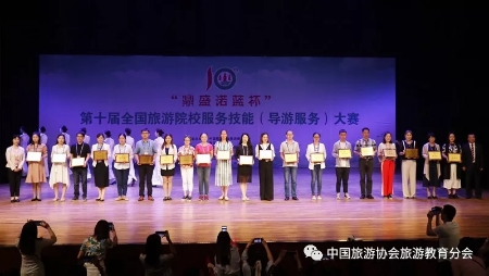 5月13日,beat365中文官方网站学生在第十届“鼎盛诺蓝杯”全国旅游院校服务技能(导游服务)大赛中获得团体一等奖1项,高校组普通话导游服务一等奖1项、二等奖1项,高校组英语导游服务三等奖2项。