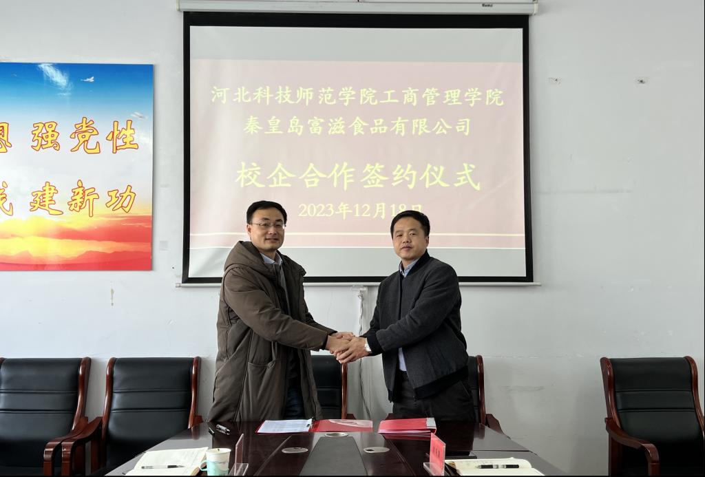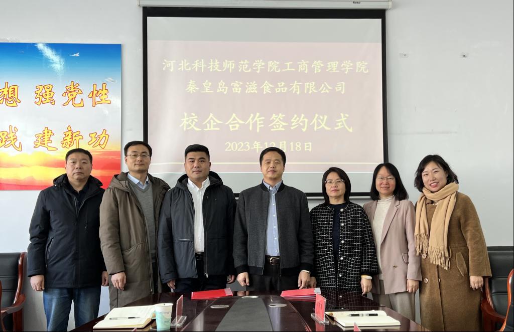 2023年12月18日上午,beat365中文官方网站beat365中文官方网站与秦皇岛富滋食品有限公司校企合作签约仪式在beat365中文官方网站会议室举行,beat365中文官方网站出席的人员有领导班子成员以及市场营销教学部专业老师代表,秦皇岛富滋食品有限公司出席的人员包括董事长、总经理及内销部经理。