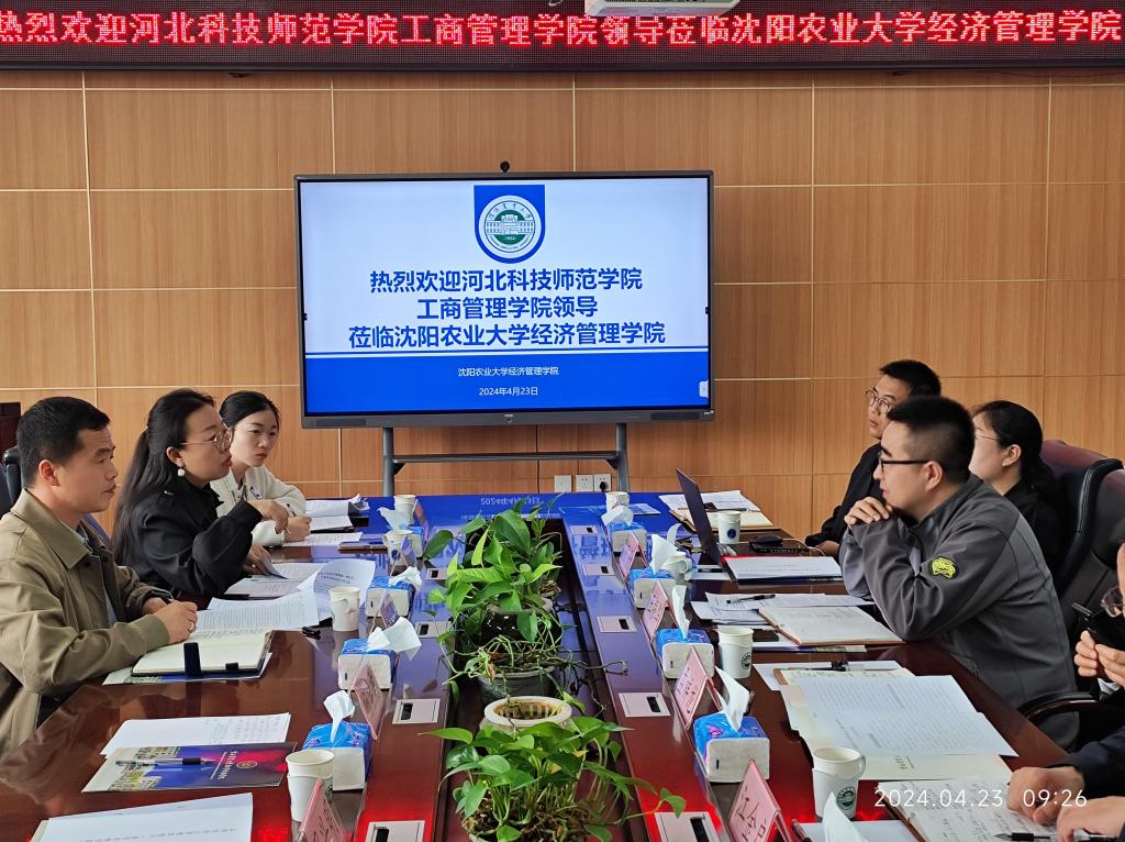 4月23日,beat365中文官方网站刘海滨院长带队赴沈阳农业大学经管学院就农业管理专业硕士培养进行交流学习。沈阳农业大学经管学院孟祥龙书记等8位领导和老师参加了交流活动。
