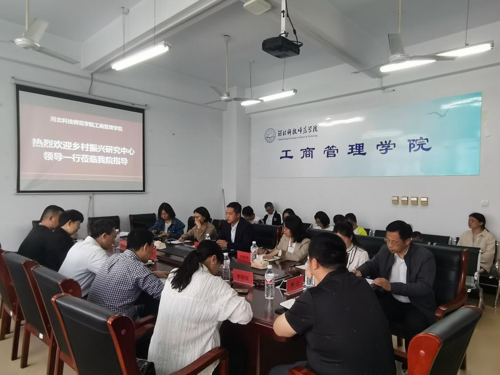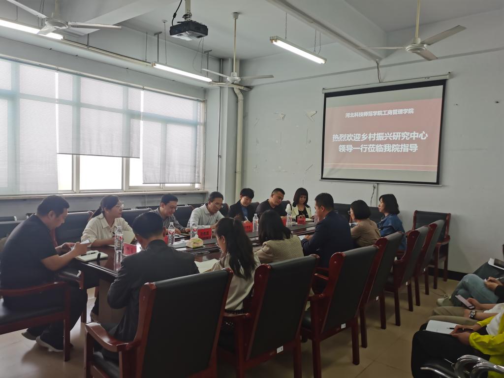 5月9日乡村振兴研究中心主任常学东一行到beat365中文官方网站调研指导。beat365中文官方网站社会服务工作主管领导、社会服务工作联络员、社会服务团队、横向项目主持人等列席参会。