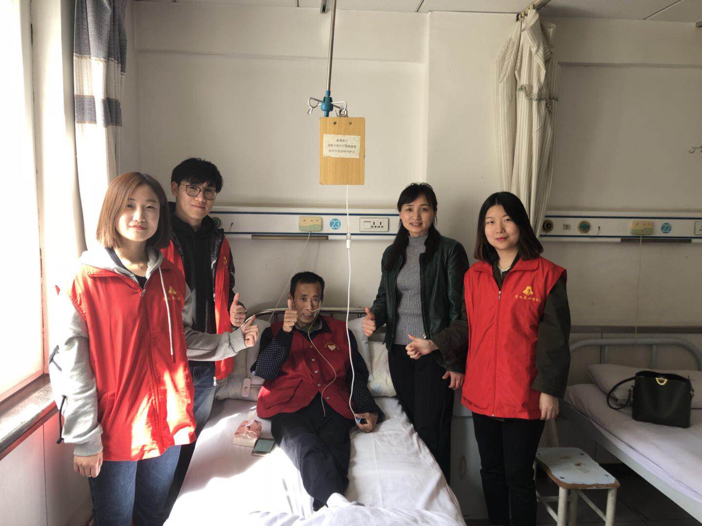 2018年4月13日,得知沈如波同志生病住院后,beat365中文官方网站师生志愿者立即组织起来,利用周末时间到医院陪护、照顾沈如波同志,带去了beat365官网师生的关怀和祝福。