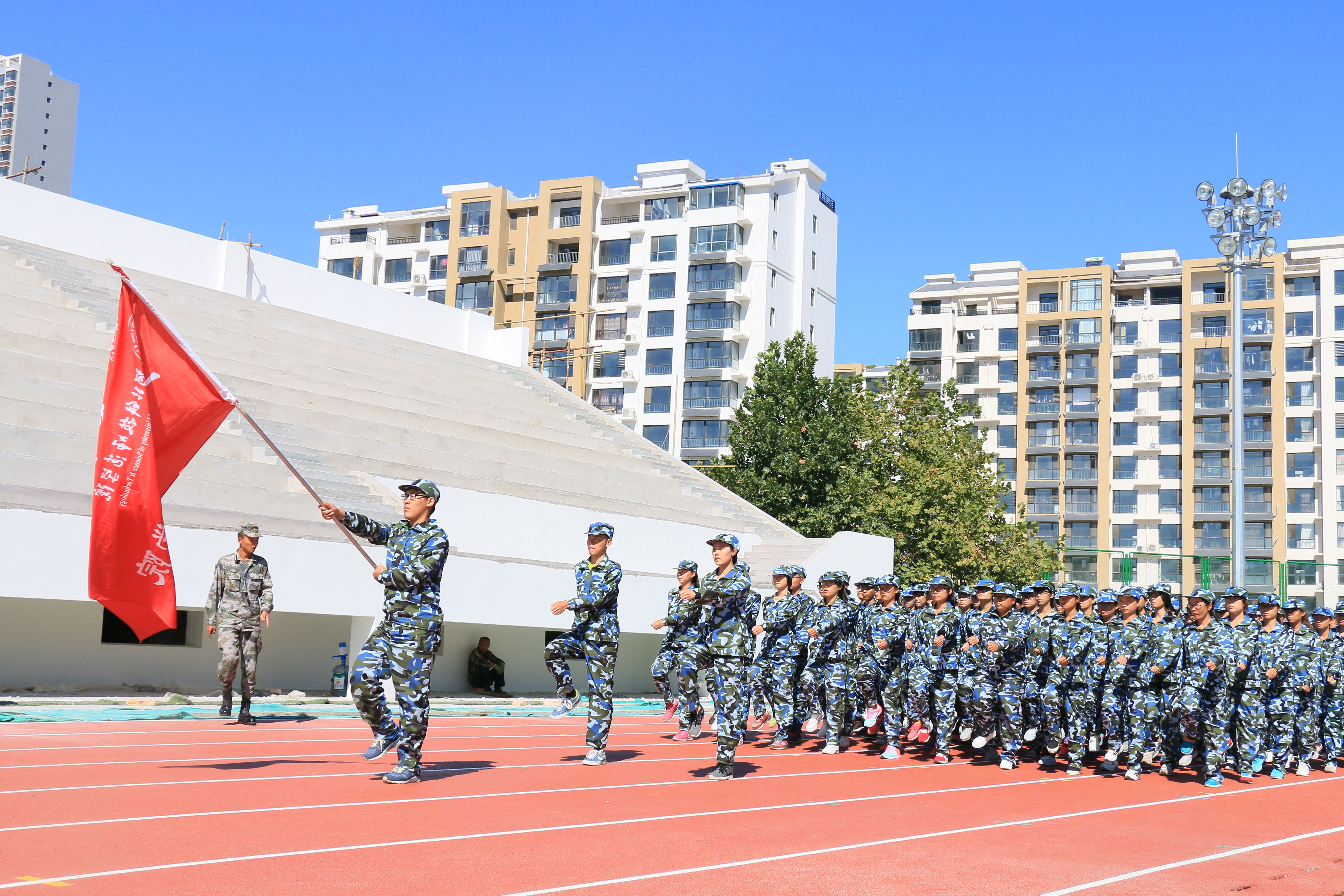 这些天的军训生活中新生们不怕苦不怕累,充分展现新生风貌,努力上好大学的第一堂课,并且交上一份满意的答卷。大学是新的起点,同学们要不断提高自己的能力素质,明确目标,在这里成长,在这里绽放!为美好的明天而奋斗。