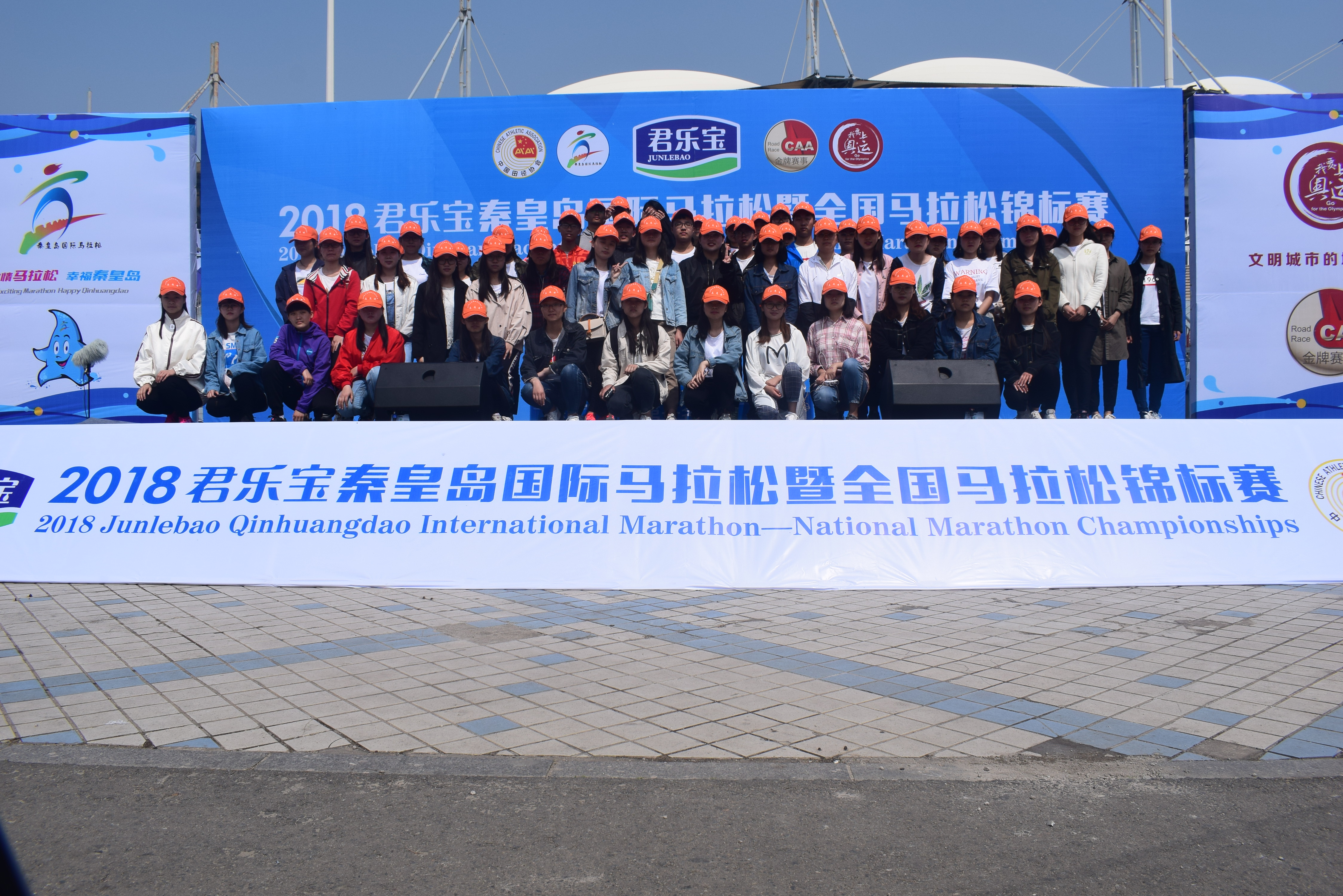 2018年5月13日早8:00,秦皇岛市举办秦皇岛国际马拉松暨全国马拉松锦标赛。beat365中文官方网站由党委副书记副院长李强华带队,学工办主任韩晓霞、专职辅导员赵卓、徐景升、班主任王涛四位老师带领200名马拉松志愿者对秦皇岛马拉松比赛进行赛道安保志愿服务。