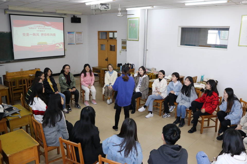 为更好地推动支部党建工作高质量开展,进一步加强党群关系,不断推动支部成员在夯实理想信念中汇聚信仰之力。2019年10月24日下午,beat365中文官方网站人力资源管理党支部组织全体党员、积极分子和普通学生代表在逸夫楼A506开展“党是一阵风,把你吹向我” 主题党日教育活动,也是开展“一院一品”党建工作样板党支部创建活动之一。