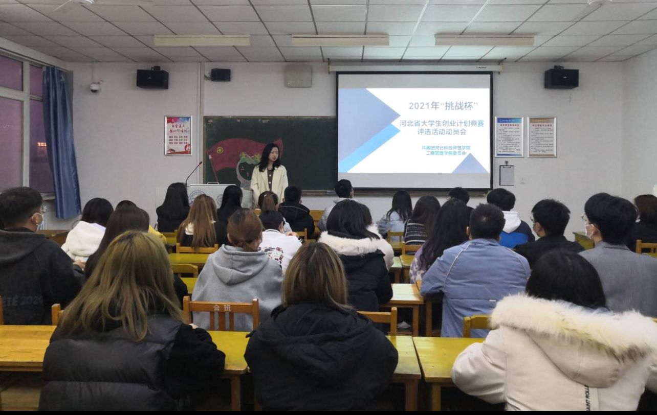 为深入学习贯彻习近平新时代中国特色社会主义思想,贯彻落实国家双创工作部署,进一步聚焦为党育人功能,引导和激励广大学生通过广泛的社会实践、深刻的社会观察,不断增强对国情社情的了解,激发创新精神,培育创业意识,提升社会化能力,按照校团委《关于组织开展2021年“挑战杯”河北省大学生创业计划竞赛校内选拔赛的通知》要求,结合学院《关于组织开展2021年“挑战杯”河北省大学生创业计划竞赛校内选拔赛院级初赛的通知院级初赛通知》部署,beat365中文官方网站于2021年10月14日召开“挑战杯”河北省大学生创业计划竞赛动员会,学院各团支部委员参加此次动员会。